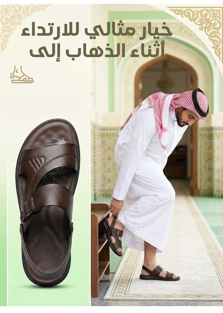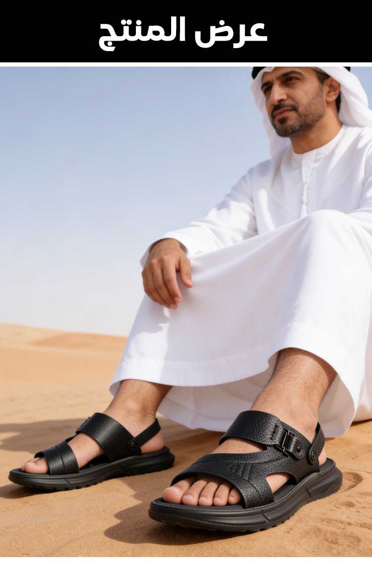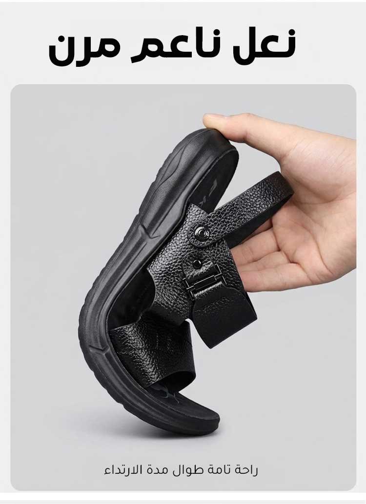 صندل كاجوال من جلد بملمس حبيبي بنعل سميك